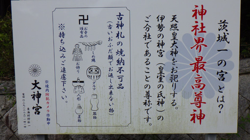 ![]() 天候(晴れ) 日本三体虚空蔵尊 ![]() 村松山虚空蔵尊 徳川家康公より朱印五十石を寄進された 朱印寺 平安初期大同二年(807)年平城天皇の勅額により 弘法大師によって創建された日本三大虚空蔵尊の一つです 村松山は平安末期より約500年の間 領主佐竹氏の保護を受けました 近世には徳川家康公より朱印五十石を寄進され国光公の庇護のもと 朱印寺として栄えてきました 現在は真言宗豊山派に属しており 伊勢の朝熊虚空蔵尊 会津の柳津虚空蔵尊とともに日本三体の一つとなっています ![]() 境内入口 仁王門 待ち合わせたSakiちゃんと合流いたします 早々に村松山虚空蔵尊の仁王門から入り境内を進みました ![]() 本 堂 鐘楼堂 外は蒸し暑く滝汗でビショビショです汗を拭いながら本堂へ 本尊は大満虚空蔵菩薩です 由緒 由来は平安時代に弘法大使空海がお刻みになられたと伝わる 大満虚空蔵菩薩が本尊であり その法灯は現在も受け継がれています ![]() 境内の様子 大客殿 ![]() 本堂内 本尊が祭られている ![]() 金の彫刻 分岐道標 境内を進むと分岐に出ます 分岐を三重宝塔再建碑の前を通り三重塔へ行きました ![]() 三重塔碑 三重塔 参道の階段を上ると三重塔につきます 見上げる塔は神々しい輝きを感じる圧巻の建物でした ![]() 奥の院 多宝塔 ![]() 大神宮入口 茨城のお伊勢様 ![]() なで犬案内板 なで犬 ![]() 大神宮社殿 天照皇大神宮 ![]() 大神宮案内板 境 内 ![]() 有名パスタ店 Gonちゃん & Sakiちゃん 参拝を終えた私たちは昼食のために向かった先は 茨城ではチョー有名なパスタ店です ![]() 野菜サラダ 明太パスタ 美味しいパスタを食べながら久しぶりの談笑でした 虚空蔵尊と大神宮で神仏の歴史と導きを授かり感激の一日となりました 茨城の素晴らしい宝を見つけ旅にまた来たいと思います 動画をご覧くださいね! 戻る |