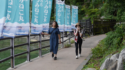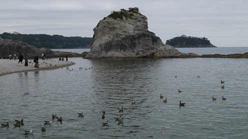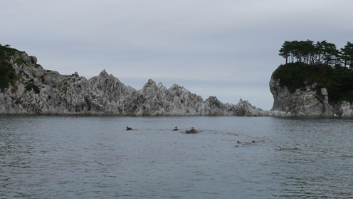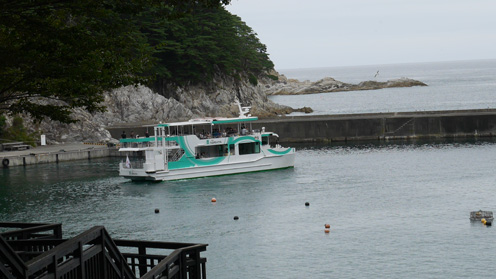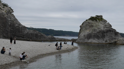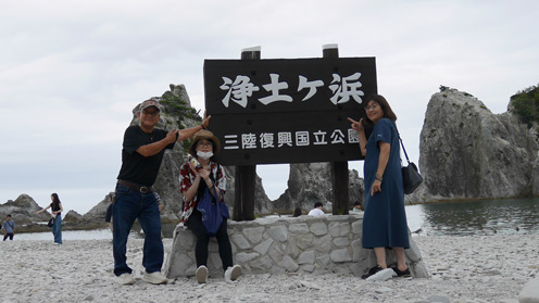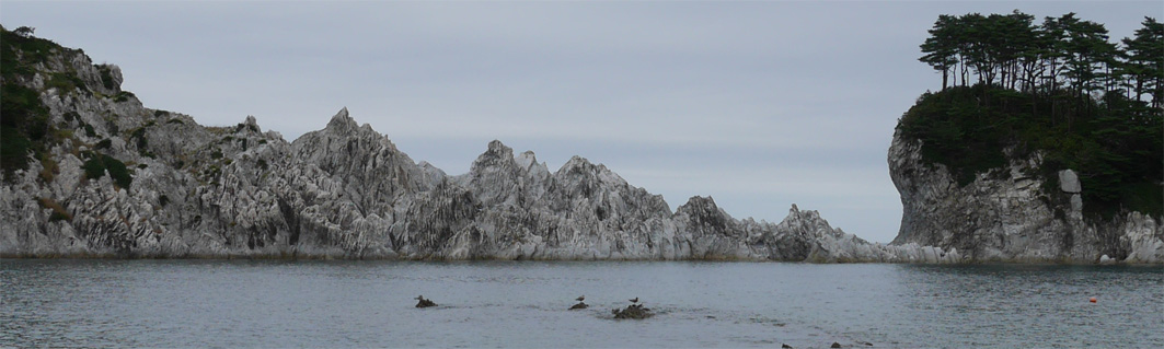 令和6年9月14日天候(曇り) ![]() 浄土ヶ浜 数十年ぶりに宮古に来ました 此処の浜も一度来てるが記憶に残っているのは尖がった白い岩だけです 浄土ヶ浜は宮古の代表的な景勝地で流紋岩と緑の松そして 青の洞窟などが有名だ ![]() 案内板 遊覧船乗り場 郡山を7時30分に出て宮古に着いたのが 午後の2時を回っていました 駐車場は満杯でしたが何とか止めることが出来ました 看板を確認して建物にあるエレベーターで海岸の出口まで下ります ![]() 海岸散歩 流紋岩の上に林立する松の木 整備された道には黒い階段があり そこを下りてゆくと海岸線の遊歩道に出ます 行き交う観光客の姿が多くみられ皆さん楽しんでいる様子でした ![]() 尖った白い岩 海原から突き出た岩 思い出の鋭く尖った白い岩が海面から突き出ています 之だ これが思い出の風景と歩みを止めて懐かしみました ![]() 海岸でくつろぐ観光客 極楽の絶景 海岸線から見る景色を堪能しましたが! 浄土ヶ浜は海側からしか見れないポイントがいくつかあるようです ![]() 海岸に立つ道標 天を衝く大岩 船に乗り遊覧すれば・・・ 弁慶手形や子安地蔵・青の洞窟などを見ることができます ![]() カモメの休む岩 壁は流紋岩 私たちは宿に入る時間が過ぎていたために! 船に乗ることができませんでした 火山岩でできた白い岩が海原を飾るさまは正に極楽浄土です 絶景を楽しみ宿に向かった ![]() 宮古の夜 秋祭りの屋台 宮古の街は秋祭りで凄い賑わいです 祭りばやしの音が聞こえるが神輿の姿は見えません! 練り歩く時間帯が決まっていてここに来るのは数時間後になるようです ![]() 街で見つけた居酒屋 宮古の夜 街中で見つけた居酒屋に入ると粋な女将さんが迎えてくれます 店内には多くの日本酒が表示されていました ビールから始まりましたが直ぐに日本酒へ切り替えます アテは刺身でしょうと珍しいタラを頂くことに之があたりで極旨でした ![]() 座敷に佇む二人 日本酒が美味い ホヤの刺身や焼き魚などでペースが進みます 酔いが回り日本酒の飲み比べや食べ物の写真はほとんどありません! お店のスタッフさんもいい方で宮古の夜を楽しむことができました 東北の人は本当に人情に長けた優しさを感じます 動画をご覧くださいね! 戻る |