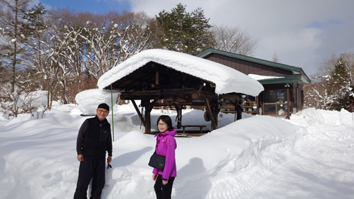 | 天候(曇り) ![]() ゲレンデTOP 二年ぶりの滑りを楽しむために来ました 目指すは猪苗代スキー場だ しかし駐車場が満杯で車を止める事が出来ません 案内に従って他の場所へ移動するも何処もいっぱいです 一時間くらいウロウロするも止めることができづ沼尻スキー場へ向かった しかし 電源トラブルでゲレンデが閉鎖されています ![]() 駐車場 満車です 約2時間のロスタイムの経過の後に裏磐梯スキー場に着いた 此処も駐車場はいっぱいで離れた場所へ案内されます ![]() リフトにてTOPへ 道標前 リフトに乗り二年ぶりの滑りを楽しむことになりました ゲレンデTOPにて記録写真を一枚 (笑) ![]() 磐梯山噴火壁 動物の足跡 霞んでいるが噴火壁の様子を見ることができます 小動物の足跡を見つけ追う姿あり・・・ ![]() 磐梯山(天狗岩) ゲレンデ(奥に檜原湖) 真っ白な尾根に尖がりは天狗岩だ 北の眼下には檜原湖が湖面を白く染め! 右へ視線を移すとグランデコのゲレンデが筋状に見ることができます ![]() 林間コース 之から滑る((笑)) しばし散策を愉しみいよいよ二年ぶりの滑りだ 大丈夫かと不安もあります (笑) ![]() 二年ぶりに 滑るSei ゲレンデは圧雪の上に軽くパウダーがのっかっています 思ったより重いが良い条件で滑る事ができ板も喜んでいるようだ ![]() 同じく二年ぶりの Gonちゃん Gonちゃんは滑れるだろうかと心配していたが! いったん板に乗っかれば豪快に飛んできます 相変わらず男前の滑りに圧倒されました (笑) ![]() 久しぶりと 愉しむHiroちゃん Hiroちゃんも二年ぶりです 安定した滑りは持ち前の明るさと経験の表れと! 転ぶこともなく滑り切りました ![]() 滑り終えて 山小屋へ 二時間余りの滑降を楽しみ山小屋へ来ました 山小屋は例年の1.5倍くらいの積雪があります ![]() 小屋の中(Gonちゃん・Hiroちゃん・Sei・Takaさん) 喜多方ラーメン 豚しゃぶ 小屋ではTakaさんが合流して新年会だ 食べきれないほどの料理を作りましたが写真はありません? 記録に残るのはTakaさん自慢の喜多方ラーメンと 豚しゃぶの二枚でした (苦笑) ![]() 久しぶりの豪雪 裏の広場 翌日は朝から太陽が出ています 小屋の屋根からは暖房の熱で雪が落ちました ![]() 翌 朝 小屋を後にします 初滑りと山小屋新年会で今年も良いスタートが切れました ありがとうございます 動画をご覧くださいね! 戻る |