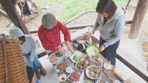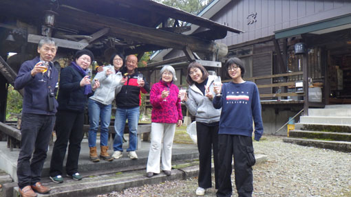 天候(曇り~雨) ![]() 色付き始めた山小屋の秋 山小屋恒例のキノコオフ会を楽しみました 天候は曇りだが気持ちは晴天です (笑) ![]() 白布山 山小屋の風景 白布山の色付きは去年より遅いようだ それでも小屋周りのモミジが赤く際立っています ![]() 山小屋のキノコ キノコ団子 到着早々 キノコ狩りを楽しみました エノキタケが団子になって出ています隣にもと声が弾む! (笑) ![]() エノキタケ スギタケ エノキタケを次々と見つけます スギタケや写真にはないがアミタケもいっぱい出ていました ![]() 焚 火 東小屋 気温が低いので焚火で暖を取ります 東小屋では料理がどんどん作られていました ![]() 午後の集い 網焼きの素材 午後に6人目の参加者が到着です 丁度いい具合に料理も出来上がってきたところだ (笑) ![]() モミジが奇麗 キノコ狩り 小屋のモミジがオフ会に花を添えてくれます 名人が採ってきたキノコを前に笑顔がこぼれるのでした ![]() テーブルに収穫物 何度目のカンパイ(笑) 収穫物をテーブルに並べて東小屋へ入ります 此処でもカンパイが強行されるのでした ![]() メンバー全員集合 ピザ窯 午後に一寸遅れて7人目のメンバーが到着です これで全員集合とまたまた乾杯でした (笑) ![]() 小屋周辺の紅葉 米ナス(包み焼) 小屋の周りは赤が目立ちます 焚火の中からは・・・ 今回初めて挑戦しました米ナスの包み焼が完成だ チーズをたっぷり挟んだナスを開けると 熱々の湯気の中から出てきたのは柔らかな蕩ける様な味のホンマモンでした 美味かったな ^^ ![]() 朝 食 露天風呂 夜中から降り続いた雨は時折強く屋根をたたきます 一晩中 止むことは無かった 寝床からはムクムクと一人また一人と起きてきます 全員起きてきたところで朝食を頂きました テーブルには味が自慢の喜多方ラーメンとキノコご飯がスタンバイです 雨音を聞きながら・・・ 昨日の出来事などを談笑しながらご飯を頂きました 皆さん キノコオフ会 最高でした 次回も楽しみましょうね~ 動画をご覧くださいね! 戻る |