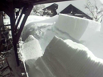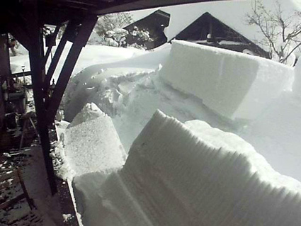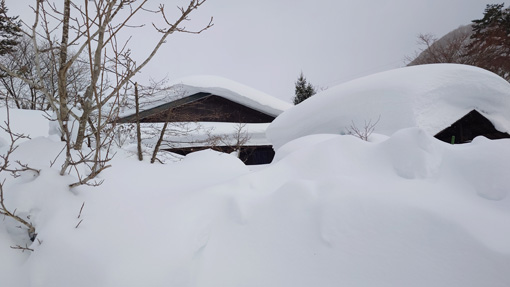 天候(曇り~時々晴れ) ![]() 裏磐梯(山小屋) 久しぶりに山小屋へ来ました しかし車が入れないために途中から歩いて辿り着きます ![]() 山小屋が半分くらい埋もれた 東小屋も隠れた 屋根の雪は何度か落ちましたが! ここ数日の降雪で積もったのが写真の状況です ![]() ウッドデッキ 薪ストーブ小屋 ウッドデッキの高さが1mくらいで! 其処からさらに1mくらい積もりました 落雪の瞬間 コマ送り ライブカメラの動画をコマ送りにしました この厚みで落ちてきたらた考えただけで恐怖を感じます ![]() 車が入れない ここまでは初めての経験 写真で見る分には奇麗な銀世界ですが・・・ 除雪や落雪・交通の便などなど影響が大きいので止んでほしいですね! 恐怖の動画をご覧くださいね! 戻る |