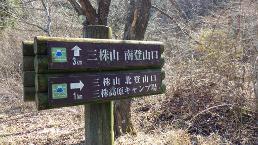 令和7年02月16日天候(晴れ) 登山日和 見えるチャンス到来 ![]() 山頂にある電波塔&富士見台 快晴の登山日和に富士山の見える山へ来ました 此処は石川郡古殿町にある三株山です 2月は空気が澄んでいて見えるチャンスが大きいのだ (笑) ![]() 古殿町(最初の道標) 林道を進む! 古殿町を過ぎて民家が点在する細い道を進みます 暫くすると最初の案内板が出てきました ![]() 此処を左に入る 南登山口(駐車場) 最初の道標から数キロ走ると登山口の案内板があります 其処を左に折れて登ってゆくと南登山口駐車場(3~5台)に着きました ![]() 登山口の林道 シュンラン?の葉 早々に三株山に行く林道を進みます 最初は急斜面の道ですが山頂近くになると緩斜面になりました 春はまだなのか草花の芽吹きを見ることができません! 元気な青い大きな葉を見つけて・・・ 根元を見るが花芽はついていませんでした ![]() 林道を登ります 山頂にある鳥居 歩き始めて20分くらいで 山頂の富士見台が見えてきます 山頂広場には木造の大きな鳥居が在り祠が祀られていました ![]() 富士見台(方位版) 最高点にて! 早々に富士見台に登ります 方位版を見て富士山方面の山並みを望遠鏡で覗いた 霞んではいるが今日は絶好のチャンス?のはずです (笑) 目を凝らして眺めるも確認することは出来ませんでした ![]() 富士山の見える方位 休 憩 山並みは白い尾根を連ねていて奇麗です 肉眼で見えるのは北方面の磐梯山や安達太良山くらいでした 富士見台から下りて電波塔の石段に座り休憩です 休憩も終わり時計を見ると下山するのは早すぎると! 北登山道を探索することにしました ![]() 北登山口 道標 三株高原キャンプ場入口 北登山口は山を回りこむ様に車を移動させます 数キロ走ると北登山口へ着きました 此処はキャンプ場の入口でもあるようです ![]() 山頂方面の山肌 登山道の様子 山頂に近づくと笹に覆われた山肌になりました 登山道は雪解け水でぬかるところも在り滑ります ![]() 木登りGonちゃん 木漏れ日の林 灌木林には木漏れ日が落ち影絵となり奇麗だ 足元の草花が未だなので落ち葉の音を楽しんだり木登りで癒されます ![]() モグラ堀山 北登山道から見た富士見台 北登山道は山道のために・・・ 登山に来た様な雰囲気を味わうことが出来ました 南登山道は舗装された林道のためにチョット物足りないと思います (笑) しかし此処は富士見台の在る富士山の見える山で有名な場所だ 今回は見ることはできませんでしたが! 次こそは富士山を確認したい又来たい山となりました 動画をご覧くださいね! 戻る |