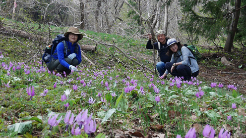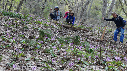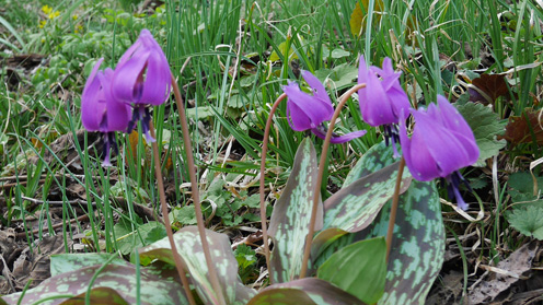 | 天候(晴れ) ![]() カタクリの花 季節は今頃と鳥屋山へ来ました 少し遅れたかな?と気持ちが逸ります ![]() 駐車場 スイセン 駐車場に着くと数台の車が止まっていました 集落の中を通り登山口へ行く道中にスイセンの群生地があります ![]() 登山口 〇〇の花? 登山口には一台の車が止まっています ん~ ここまで来ることもできるんだ ![]() キクザキイチゲ Soneさんと遭遇 カタクリの花の中にキクザキイチゲも咲いています 登ってゆくと仙台のSoneさんと久しぶりに会うことができました 相変わらず山歩きを楽しんでいる様子でした Soneさん 又どこかで会いましょうね! (笑) ![]() 色鮮やかな花 力清水 力清水を渡るとカタクリの群生地だ ![]() 花の絨毯 見事な群生地 登山道わきには紫色の花が敷き詰められて咲いています 大きな花 登山道を飾る花 大きな株もあり見事でした ![]() 遠望の白い尾根 ヤマザクラ 群生地を過ぎて林道に出たところで折り返します そこで休憩を楽しみ林道を下りました 林道わきには咲き終わった早咲きのカタクリの姿があります 日当たりが良く成長が早いのでしょうね! 駐車場について時計を見るとスタートから約3時間でした 山歩きは楽しいですね~ (笑) 動画をご覧くださいね! 戻る |