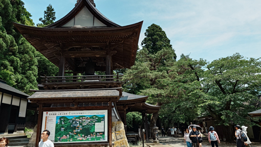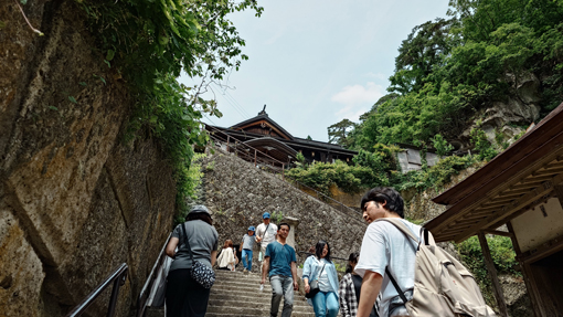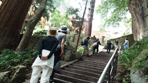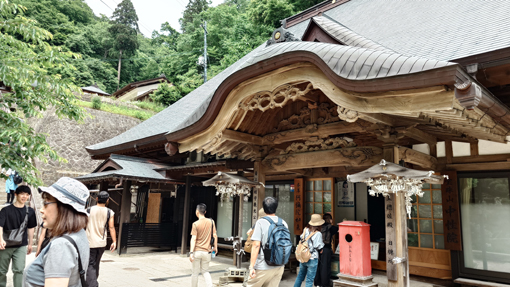 | 天候(晴れ) 山寺~蔵の宿(あおやぎ)~千本だんご~居合神社 ![]() 岩山に祀られる寺 宝珠山立石寺(山寺)は 何と参道の石段は全部で1070段で! 山を登りながら拝観(参拝)出来る お寺さんです ![]() 根本中堂 最初に参拝 商店街を通り駐車場へ入ります 何処の駐車場も車であふれていました 最初の参拝は根本中堂です 多くの参拝者が御朱印を頂くために並んでいました ![]() 芭蕉碑 案内板 芭蕉の像が在るところを通り案内板を確認します ![]() 山 門 此処から修行の霊山 此処から山全体が奇岩怪石からなる霊山となります ![]() 途中に多くの石仏 参拝者が行き交う 石段は登ることにより煩悩が消滅すると言われている、ありがたい修行の石段だ 今日は気温も高く 汗がしたたり落ちます ![]() 大岩に文字が刻まれてる 仁王門の道標 岩壁に仏の姿を見つけることができた人は 幸せになれるとされると言われているパワースポットに着いた ![]() 参道の階段も間もなく最後 歴史を垣間見る建物が並ぶ 最終地点にあたる「奥之院・大仏殿」は悪縁切りのご利益があるとされています。 見上げると奥の院の建物が確認できました ![]() 奥の院 境内の梵鐘 奥の院隣には大仏殿があります 金色に輝く5mほどの阿弥陀如来像が安置されていました ![]() 納経堂・開山堂 五大堂から望む 山寺の中で最も有名な場所が開山堂です 右の建物が開山堂で立石寺を開いた慈覚大使の像が安置されています 左の小さな赤いお堂は収経堂で山寺内でももっとも古い建物です ![]() 山寺の蕎麦屋 板蕎麦大盛 参拝を終えて昼食の時となり近くにある蕎麦屋さんへ入りました 選んだのはお店の雰囲気が良かったからです (笑) 中へ入ると大きな店内にもかかわらず ほぼ満席でした メニューから板蕎麦の大盛を注文します 之があたりで コシのある蕎麦にお好みの薬味で頂くと最強の旨みが喉を走った ![]() 蔵の宿(あおやぎ) 部屋の扉 参拝を終えて今日のお泊り宿へ着きました 以前にもお世話になった所で記憶に残った良い宿です 部屋の様子 宿のご主人さんとお母さん 宿へ入るとご主人とお母さんが出迎えてくれました 暫くですと挨拶を交わすと笑顔が嬉しい至福の時が始まります ![]() 美味しい創作料理が並ぶ 酒が進みます 之から始まる思い出の料理は楽しみがいっぱいだ 次々とお母さんの創作料理が出てきます 写真にあるのは料理の走りで次々と出てくる御馳走に酒が進むのでした (笑) ![]() 宿の外観 宿の畑 次の朝は宿の脇で朝市が開かれています 朝採りの新鮮なイチゴが並んでいました どれを見ても美味そうで複数のパックを手に取りゲットしました ![]() 千本だんご 凄いぞ! 帰路は山形で有名な千本ダンゴ店へ寄り道です 店の駐車場はいっぱいで50人くらいの人が並んでいました 美味い団子は日持ちがしないと案内されていましたので! お土産は諦めて食べる分だけ購入しました ![]() 居合神社 参道の道場 今回の旅で最後に寄ったところは居合神社です 到着時には多くの子供剣士が神社から出てきました 練習を終えて帰るところだったようです 村山市は居合道の発祥地です 「日本一社林崎居合神社」は全国で唯一の「居合神社」です 神社横にある武道場が「村山居合振武館」です 居合の普及と振興を主な目的として建てられ、盛んに稽古が行われています。 上記のように記されていました 動画をご覧くださいね! 戻る |