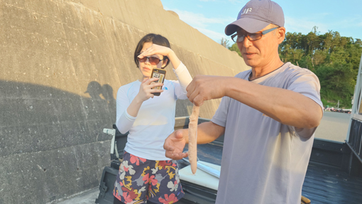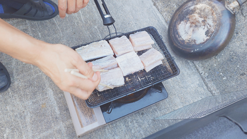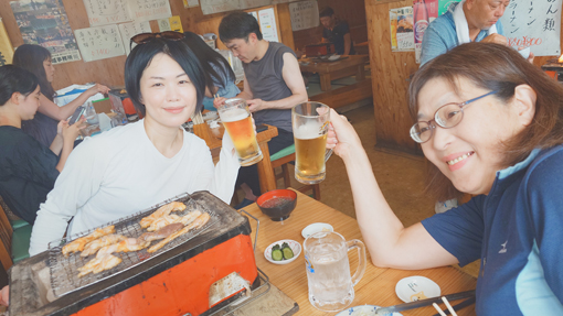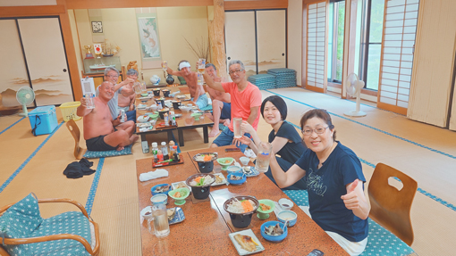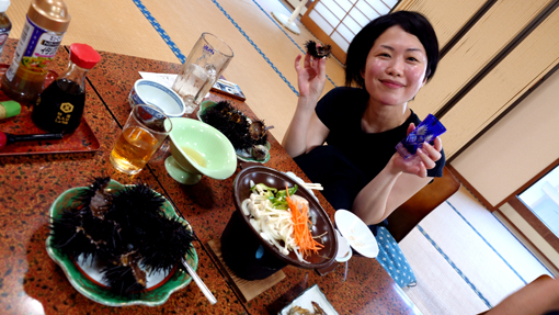 天候(晴れ) ![]() 岩井崎海岸 鋭い岩が並ぶ岩井崎の海岸 太陽の日差しを浴びた海面はコバルトブルーの輝きです ![]() 岩井崎海水浴場 横綱銅像 岩のくぼ地にできた溜まりでは多くの子供たちが泳いでいました 近くには横綱の銅像が立っています 土俵入りの形を披露する姿もありました (笑) ![]() 潮吹き岩 潮吹き岩の吹き上げが撮れるかとカメラを構えます 今だ と シャッターを切ると見事に吹き上げる潮を捉える事ができました ![]() 気仙沼ホルモン 初めて食べる! 連休中の旅で! 噂に聞き気になっていたホルモン焼があるとHiroちゃんが話す ん~ それは何 気仙沼独特の焼きと盛り付けソースがあるとわかりました それを聞いてからは行かない手はないと早々に来ました 店に着くと満席で車で待つことになります 20分くらい待つと店員さんが車まで向かいに来たので入店だ 店へ入ると店内は煙でモウモウと霞んでいます (笑) テーブルに座るお客さんを見ると・・・ 皆さん夢中になって食べているのが分かりました 出てきたのは皿に盛られたキャベツの千切りと生ホルモンです 見よう見まねで焼き始めると いい香り(ニンニク)が漂うのでした 一口食べると之はたまらん激ウマとホルモンの柔らかさが絶妙です それにタレの味が旨すぎて箸がとまりませんでした 最初は多すぎかなと思いましたが足りないくらいでした (笑) 初めて食べた気仙沼ホルモンが美味すぎて感動です 二人の美味しそうに飲んでるビールが気になるのか! 横目で見てる運転手のSeiでした (笑) また行く機会があるときは「お福」へ必ず行くでしょうね! ![]() 唐桑半島の海岸 漁港でBBQ 唐桑半島の海岸に着いた私たちは! 早々に飲む準備にかかりました ![]() 今日も元気だ タチウオの腸 軽く飲んでるつもりでも進む酒を止めることができなくなります そこへ民宿(なぎさ)のご主人が来て タチウオを捌いてくれます ![]() タチウオを捌きます 全員集合 大きな魚を捌くのにはコツがいる! 腸をとり背ビレをはがしてから三枚におろすのが大変でした その姿は見てるだけでも力が入ります 賑やかになった隣では集合した面々が飲み始め盛り上がるのでした (笑) ![]() 焼タチウオ 生きたウニ タチウオを焼きます そこへ海から上がった生ウニが仲間入りだ ![]() 之を焼ウニで食べた 民宿(なぎさ) BBQの網は品を変えて並び焼きあがるのでした ![]() ウニタワー 酒が進みます 二日目の夜は宿で大宴会となります ここでもウニが主役で他にも海の幸が所狭しと並びました ![]() 宿で再び盛り上がりました 宿を後に(Gonちゃん・Hiroちゃん・宿の女将さん・ご主人) 二日間お世話になりました宿の女将さん ご主人さま 皆さん 素晴らしい癒しの旅を満喫することができました 女将さんお土産までいただきありがとうございます ご主人さま 美味しいウニ三昧の御馳走に感謝いたします 今回はIsoさんメンバーと合流することができて 一段と賑やかに過ごすことが出来ました ありがとうございます 感謝 動画をご覧くださいね! 戻る |