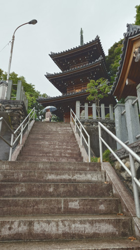 令和7年8月10日天候(雨) 雨に濡れる寺(弘法大使) ![]() 三重塔と本堂 福島県にある霊場八十八ヶ所の中で一番札所である 真言宗(勝行院)に参拝に訪れました ![]() 仁王門 参拝者の姿 駐車場に車を止めて見上げると歴史を感じる仁王門に圧倒された 雨が降る中でしたが参拝者の姿が見られます ![]() 一番札所(勝行院) 御供養 此処は一番札所で県の指定重要文化財や彫刻などがあり 指定有形文化財もある由緒あるお寺さんです ![]() 三重塔・鐘楼 三重塔 参拝 客殿の前を通り本殿脇を進むと急な石段がありました ![]() 石段の先に鐘楼 その先に三重塔 最初の石段を登りきると鐘楼が在ります その先に見えるのは仁王門からも見ることができた三重塔だ ![]() 境内のモミジ 参道からの風景 境内は見事に整備され 参道から見る建築物はじめ 木々の姿や苔むした石垣などなど感動の連続です ![]() お地蔵さん 仁王門 真言宗は弘法大使 空海が布教活動に力を注ぎ 日本国内に広めた仏教です 空海が開いた真言宗では 大日如来が本尊 即身成仏が大切な教えとされています 即身成仏とは この世に体のあるうちに仏になれるという教えです 上記のように空海の歴史にありました 私は数年前に高野山へ参拝に訪れました 高野山は大きな一つの山で多くの寺院が建ち山全体がお寺です 本堂は大伽藍にそびえる金堂が在ります 高野山で執り行われる重要な行事はここで執り行われると聞きました 雨に濡れる お寺さんの神々しい姿に感動をいただきました 神社仏閣は新しい視点を感じる心の拠りどころです 合掌 動画をご覧くださいね! 戻る ![]() |