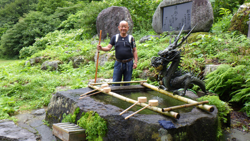 令和7年8月30日天候(曇り~雨) ![]() 湯殿山神社 初めてのお参りは平成9年でした あれから29年(29回目)の出羽三山参りです ![]() 駐車場 本宮入口 今にも雨が降り出しそうな空模様の中の参拝でした 駐車場は満車で奥に空き場所を見つけて なんとか車を止めることが出来ました 奥宮の手前で写真に納まります ![]() 奥宮(御手洗場) 湯殿山登山道 参道の御手洗場から先は撮影禁止区域だ 奥宮への参道を進み体を清めてから拝殿へ向かいます 拝殿へ向かうと2匹の青大将(神蛇)と遭遇いたしました 縁起のいい蛇との遭遇ですが悲鳴が何回となく聞こえてきます 会いたくても会うことが出来ない珍しい遭遇に感激でした ![]() 参道を下る 赤鳥居の前で! 奥宮での参拝を済ませ参道を下ります 道中にある社へ回り合掌致しました ![]() 羽黒山神社 杉並木参道 湯殿山から車の移動で羽黒山神社へ来ました 今までは7月に来ていたので月をまたいだ為か参拝者の姿が少ないです ![]() 境内の鳥居 奥に見える合祭殿 境内に並ぶ古木の杉並木を歩いて拝殿へ向かった 7月はアジサイの花が奇麗ですが! 8月は花も終わり代わりに杉の株にキノコの塊が出ていました (笑) ![]() 羽黒山神社 三神合祭殿 三神合祭殿の急な階段を上り御朱印をお願いしてから参拝です 常には御祈祷を頂く参拝者の姿が多く見られるのですが! 神事をする光景を見ることは出来ませんでした ![]() 境内に祀られる社 斎藤商店 参拝を終えて何時もお世話になっています斎藤商店へ行きます ご主人が笑顔で迎えてくれました 今年は一か月遅れての参拝ですね~と挨拶代わりの言葉です 体調を崩して入院してたなど等と歓談でした それでも休むことなく29年続けてこられたのは御利益と万物に感謝です ![]() 大好きなタケノコ汁 お泊りの宿坊 大好きなタケノコ汁を食べて英気を養う事ができました 今日のお泊りは去年に続き宿坊(三光院)です 神主のお迎えを頂き寛ぐことが出来ました 明日は月山登拝 動画をご覧くださいね! 戻る ![]() |