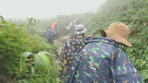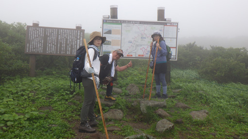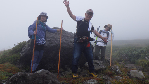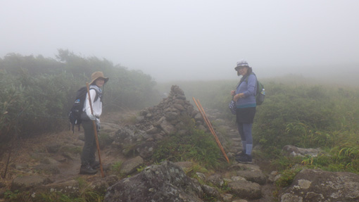 | 天候(曇り~雨) ![]() 紅葉し始めの月山 昨日に続き出羽三山参り二日目は月山登山です 4時半に起床して宿坊を5時過ぎに出ました ![]() 八合目駐車場 雨が降り出しそう(出発) 八合目駐車場に着いたのはAM6時20分です 準備をしてスタートしたのはAM6:30分でした ![]() 分岐です 直登コース ガスの中ですが未だ雨は降りそうもない! 思ったよりは蒸されない状況です ![]() 木道のリンドウ 中之宮分岐 直登コースを進み分岐に着いた 木道に咲くリンドウの花が奇麗で秋色を感じます ![]() ケルンにて! 靴底が剥がれる ケルンの在る場所を通過して大岩の坂を登っていると 岩の間に靴底が落ちていた あれ~ 之は誰かなと声がします 何と仲間の靴底が剥がれてしまったのだ 何とか応急処置をして歩けるようになります ![]() 雨が降り出した 佛生池小屋 途中は雨が降り出しポンチョを羽織りました スタートして3時間で佛生池小屋に着きます おでんや力餅を食べ休憩後に山頂へと歩き出しました ![]() 折り返し地点 疲れました(笑) 行者返し手前の大岩のある所で引き返すことにします 靴底が剥がれる・思ったより時間がかかり帰りの予定時間に間に合わないなど! 登頂は無理と判断して下山することにしました ![]() 下山分岐 中之宮 中之宮へはAM11時40分に着いた 金剛杖に焼き印をお願いして参拝を済ませます ![]() 中之宮鳥居 湿原の木道 弥陀ヶ原の木道を下ると8合目だ 今回は登頂を断念ですが月山に来れたことが満足です 29年の歳月と万物へ感謝いたします 合掌 動画をご覧くださいね! 戻る ![]() |