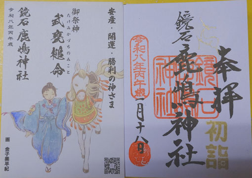 | 天候(晴れ) ![]() 鹿嶋神社境内 鹿嶋神社へ参拝に訪れました 小さな神社でしたが参拝者が次々と姿を表します ![]() 参道の石段 手水舎 約500年前の戦国時代にこの地の平安を願って 鹿島神宮からの御分霊によって建立されました。 当社の御祭神 「勝利の神さま」と云われております。 邪魔するものをはねのけ進む力があるとされ、 開運厄除、商売繁盛、家内安全、そして起業や転職、新たなチャレンジを 勝ち取ることから、 出世などにもご神徳があると云われております。 また、「鹿島立ち」から旅行安全、交通安全、 「鹿島帯」から安産、縁結びなど多岐にわたっております。 上記のように案内されています ![]() 神 殿 朝日稲荷神社 境内を巡りお地蔵様に手を合わせ神殿にお参りをいたしました 稲荷神社の赤い旗が風に靡いています ![]() 社務所 開運招福 社務所により御朱印を受けました 隣接する所にお神籤を引く所が在ったのでひ孫に代わり受けます 受けた神籤をひ孫に届けると大吉でした (笑) ![]() 社殿にお参りです 案内の通り輪をくぐる! 初めてお参りに来た神社でしたが 心身共に御利益を授かったような気持ちになれました 合 掌 ![]() 参集殿入口 参集殿 お参りを済ませて駐車場へ戻ると参集殿があります ここで参拝者の祈願やお祓いを執り行うのでしょうね ![]() 神社の前にある池 御朱印 いつも思うことは神社仏閣へ訪れた時に気持ちが楽になることです 特別なことをお願いをしたりは殆どありません! 心を無にしてお祈りをすることだけです 108の煩悩を少しでも取り払うことが出来たら良いと願っています 動画をご覧くださいね! 戻る ![]() |