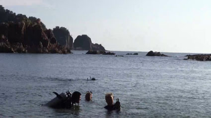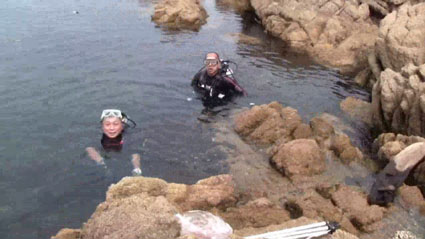ベタ凪の笹川流はスキューバーダイビングに絶好の海原でした 突き出た岩場の陰には大きな魚が潜んでる 、 イシダイ・・?やアイナメ等々面白いように魚をゲットする仲間の姿がある。 帰る頃には大きなクーラーに入りきれない魚君をお土産に、二日間の笹川流を満喫して帰路についた。。。