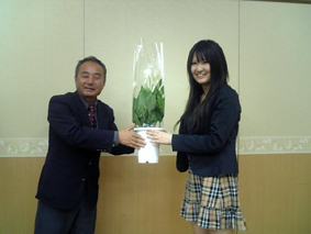 隊長へ花の贈呈