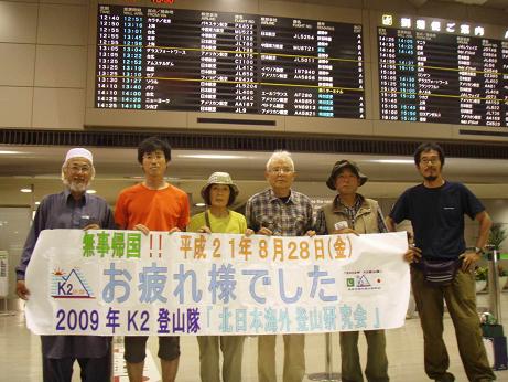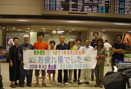 | H21.8.28:「K2_2009登山隊} 無事帰国 |