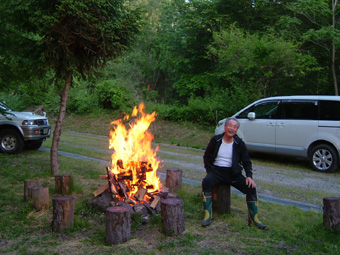 たき火の煙でスモークなんてネ!(^O^)