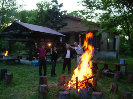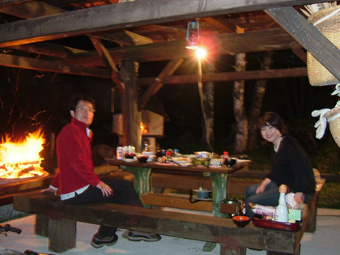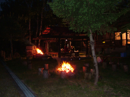 焚き火の灯りは酔い心地を夢の世界へと誘うのでした