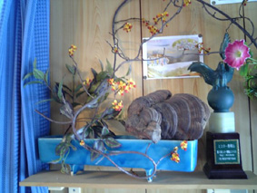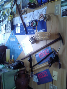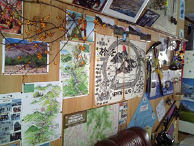 ![]() 山小屋のウッドデッキにも私の宝物が 私は自分が大好きだ! そんな自分の宝物は行き先々で見つけたポスターや小物であり山小屋に保存してる 他人から見ればゴミのような物ですが大事な宝物なのです ![]() 渓流で釣り上げたイワナ 田子倉湖のイワナ 魚拓は渓流釣りの宝物です 魚拓を見て時の瞬間を今でも鮮明に思い出す ![]() キナバル山の登頂証明書 蔵王のコース キナバル山に登った時に頂いた登頂証明や蔵王の非売品のポスター ![]() 第10回ミスター磐梯山 タスマニアの地図 ミスター磐梯山の置物やクレイドルマウンテンに行った時のタスマニアの地図 ![]() 伊勢参りの頂き物 ワイン(賞味期限切れも在り) 伊勢参りで知り合った中村さんからの贈り物とワイン ![]() ウィスラーの写真 古いピッケル(3本) ウィスラーに一週間 楽しい思い出と共に写真を壁に貼る ピッケルは30数年前の物で(一番上の物)木の枝で出来てるなど電話も古い黒電話! ![]() 今年のツルウメモドキ 山都町で見つけた化石 ツルウメモドキは配色が大好きだ 山で見つけた化石が数個在ります ![]() 屋久島(屋久杉の破片) 玄関のステッカー 屋久島に行ったときに駐車場の露天で屋久杉の破片を売ってる外人さんを発見 見ると山間を流れて海岸に辿り着いたのか破片は丸く削られて居る 屋久杉の破片は手を加えられた加工品の様な姿形は無いが 素晴らしい色合いと独特の香りが漂い 宝物の一級品だ ![]() 安比のポスター(中央) 槍ののれんに付けられたバッチは(約60個〜) 安比高原で開催されたYAMAHAスノーモービル大会のポスターは 今年(2008年)1月に泊まったスターダストさんから頂いた物です 宝物に仲間入り ![]() 小谷のポスター 安比のポスター 小谷村のポスターは非売品 栂池に行ったときにお泊まりした宿 カントリージョーさんから頂いた物です そして今回スターダストさんから頂いた安比高原のコースとAPPIのポスター 「いずれも非売品」 私の大好きな宝物に仲間入り有り難うございました。 戻る |