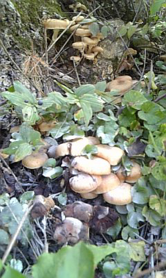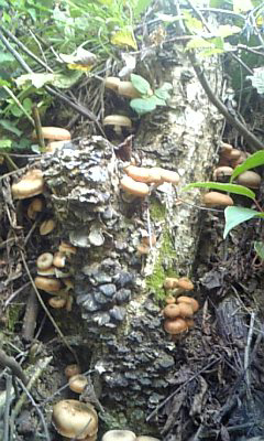 そのうち楢の木に並んでるナラタケを発見する