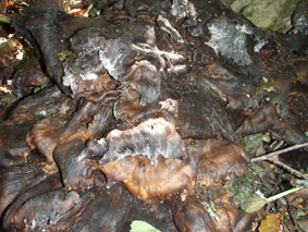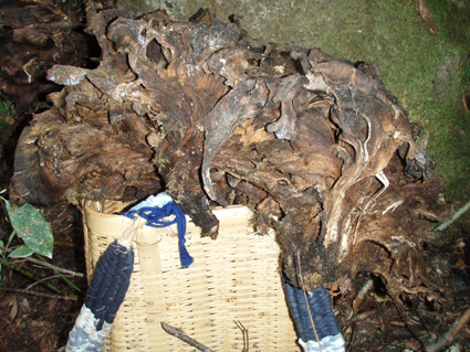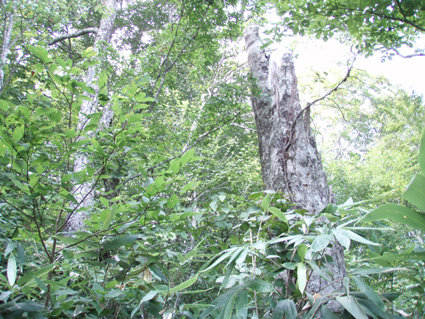 ![]() ブナ林の某山 暑くてたまらんとLove 福島県の南に在る某山へトンビマイタケを採るために朝から出かけました 山に着くとLoveが暑いよ〜 と 目を閉じて長い舌をだら〜り たまらんと言いたげです 山はとにかく暑く全身から出てくる汗でビショビショ! ふらふら状態で山を歩くSei トンビを捕まえることが出来るのでしょうか・・・? ![]() 見たこと無いようなキノコ 右の木の根には! 急な斜面を登りブナの古木まで近づくと お〜〜〜〜 凄い! 黒光りしたトンビがいっぱい居ます。 ![]() 籠に乗せてみたマイタケ(凄い量です) しかし時すでに遅しで流れてます 籠の陰に見えるマイタケも大きな株でブナの根元を巻くように出てました。 ![]() またまたよさげなブナの古木 この木下には! 写真に納めて次の獲物を求めて山肌を彷徨う と そこに 現れたのは またまた 凄いことになってるトンビマイタケだ! ![]() またまた籠に入りきれないような大株のトンビマイタケが! これも時すでに遅しで飛び去った後でした・・・撃沈 すべて食べれる時期であれば背負籠に4個分は間違いなく在りました ![]() 帰りに出てきたヤマドリ(5羽の中の一部) トンビは飛び去った後でしたがヤマドリは近くにいました・・・(笑) 逃げた獲物は大きいと言うが本当に凄い事に成ってたトンビタケです 来年こそは時期を逃がさないで 「 とる ど〜〜〜 」 ・・・Sei・・・ 戻る |