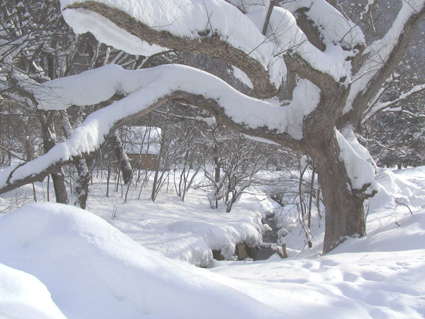 川辺の木も雪で重たそう 雪で隠れてしまいそうなLoveの家!