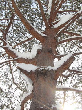 大きなツララができはじめた 松の木には野鳥が来ます