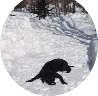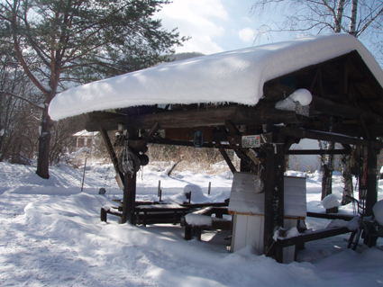 雪の上は気持ちが良いね 東小屋の雪が重そうです