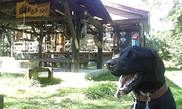 今日は初めて山小屋へ連れて行った 小屋の脇を流れる沢で行くより早く水遊びを始める