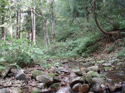 ![]() 渓流釣りも残すところ3日 週末は山に行くために釣りは出来ない それではと裏磐梯に出かけた 渓流に着くと既に二組の太公望が沢を歩いてる 近くには関東ナンバーの車が止めてあった 終了前にと駆け込みで出かけるのは俺だけではないようだ! ![]() 沢に下りて毛針を振ると小物が悪戯をする 殆どリリースもので手応えがない 2時間ほど釣り上がるうちに今年の食べ収めと言うことで三匹を頂きました 小さくてすみません・・m(_ _)m ![]() 釣りだけでは飽きたらずキノコを探す 倒木が在ると藪を越えて木の側に行く 数回繰り返すうちにナラタケもどきを発見・・・・次にも・・・次にもと背負籠に半分くらいゲットした。 ![]() 渓流ではミズの実を頂く 生で食べてみるとコリコリと美味しい 湯がいてワサビ醤油で食べると尚美味しいと袋に一杯詰め込み渓流とお別れした ![]() 帰りは林道をどんどん下る 途中の沢で見かけた太公望は既に姿が無かった・・・が・・・・ またしても釣り師らしき姿を発見する ウエーダーを着てるので間違いない しかしま〜居るものだと自分をさておき・・・・^^; 今日の収穫はイワナ三匹・ミズの実・キノコの大収穫でした。 戻る |