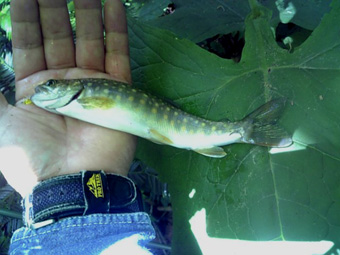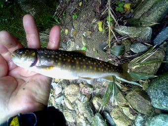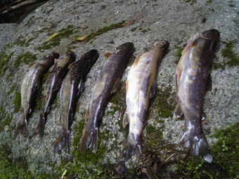 ![]() 昨日 某会議の後でイワナの骨酒を造り飲む! その味がなんと上級品! そこで今日は渓流へ出かけた。 もちろんイワナの骨酒を造るのに必要な上級品の素材をゲットするためである 「○○川に着き 早々準備完了」 渓流へと下りた ・・・・ そこでハプニングが起きる ・・・・ まだ釣り糸を垂らさないのに岩が転けて転倒 無惨にも竿がへし折れた 変わりの竿は持ってこない、どうしたもんだ ![]() 折れた竿 仕方なく応急手当(テープで折れた箇所を補強した)して釣りを決行する ![]() 竿が折れててもイワナを釣るには支障が無いようだ! 此処のイワナは色形が良い ![]() 堰堤が現れ巻き道で上流へ ![]() 少し不格好なイワナがヒット ![]() 骨酒を造るには十分な数が上がったので今日は之で退散としました。 戻る |