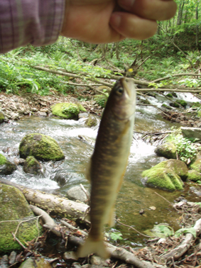 ![]() 林道 渓流に降りる ![]() 小ぶりのイワナ 渓流の花ー1 ![]() 渓流の花ー2 渓流の花ー3 ![]() 渓流の様子 ![]() 新緑の林 週末の山は福島県の川桁山の予定でしたが 所用で中止と成った 今日は中止の反動が来ないように静かに沢に出かける・・(笑) 沢と言いば渓流釣りです 猪苗代町にある某沢へはAM10:00到着 素早く準備をして沢に降りた。 一時間くらい釣り上げるが成果は今一だ! しかし本命の釣りより山ワサビの群生を見つけて大喜びのSEI 根の太いワサビが一面に在りました。 (食する分を少しだけ採らせて頂きました) また釣りに行くと見つける可愛い花や野鳥の囀りに 気持ちいい時間を過ごすことが出来た 釣りの成果はと言うと 2匹ゲット・一匹リリース・合わせ切れ一匹と撃沈でした。。。 戻る |