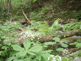 山ワサビを見つける 釣りは撃沈でした。