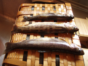 出てきて悪戯をするのは10cm位の小イワナだけです・・・・(笑)