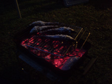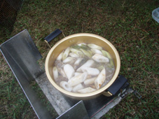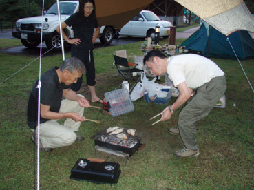 ![]() 太平山リゾート公園にて!(夕焼け) 土曜日は渓流釣りの為に早朝より沢を覗く 沢は濁流と化し流れが速い 奥まで入れば濁りは無くなるだろうと林道を進むが! 林道は至る所で崖が崩れランクルでも腹がガツンガツンと触る 奥へ進むが帰りに崖崩れで帰れない何て・・・過ぎる不安・・・ それでも奥に進み沢を眺めるが何処の沢も濁りで渓流釣りには適さない状況だ! しかたなく戻り場所を変えて沢を・・・水量が多く・・?だが 沢を探ることにした 藪を超えて沢におり毛針を流すが中りは無し 腰まで水に浸かり悪戦苦闘の結果は 「ヤマメ三匹」でした。。。 (笑) ![]() 五城目町 杉沢地区に在る盆城庵 ![]() 北ノ又集落に在る 釣りキチ三平の家 ![]() 三平の館 ![]() 格好が決まってる一匹さん Gonちゃん 三平に負けじと沢にはいるがごらんの通り濁り流れが速い 沢を釣り上がるが急流で渡ることが出来ない 仕方なく藪を超えるが野バラや山ヒルの攻撃に遭う! この地区は山ヒルの異常発生で話題になった地区とか・・・・? 沢を探るSEI 本流から戻り集落の沢を探るとヤマメが食いつく! ![]() 林道を移動中に出てきたヤマドリ ![]() 太平山リゾートの管理棟 タープを張り準備をする面々 渓流から帰りキャンプ場に到着です 一匹さんの友人で地元のSuzukiさんが合流しました ![]() 今日のメイン料理 キリタンポを作る Suzukiさん Suzukiさんは森林ボランティアを務める一方・・・ 多くの趣味を持ち 最近ではジャズに填りサックスを会場で披露するなど活躍をしてます 今日は数種類の地元料理の持て成しを頂きました キリタンポは比内地鶏の出汁にマイタケやゴボウ・セリなどなど新鮮な食材が多く超特級の味です ![]() 日が落ちて明日登る山「太平山」のお酒で酌み交わす Suzukiさん 沢山の料理を頂きまして有り難うございます 是非 こんどは福島に遊びに来てくださいね! ![]() 釣り上げたヤマメを炭火焼きにする 焼き魚に奮闘する二人 ![]() 太平山リゾートキャンプ地で初日を楽しみました 郡山を夜中に出て 釣りキチ三平の集落に着いたのは午前九時過ぎ それから沢を探り ヤマドリの歓迎を頂き 崖崩れの場所を冷や汗で通過する 渓流から帰り Suzukiさんの家にまわりキャンプ地を案内して貰う 日曜日の早朝は 料理を作っていただいた鍋や器を取りに来ていただき有り難うございました 来月も秋田県へお邪魔いたしますので宜しく御願いいたします 渓流釣りは撃沈でしたが美味しい料理に感激でした Suzukiさん有り難うございます ・・・明日に続く・・・ 戻る |