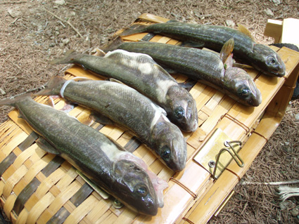 ![]() ブナ林の林道を登る トチノキ 渓流釣りを楽しみながら知人と約束をしたヤマワサビを採りに出かけた 陽射しが強く渓流釣りには不向きな天候です ![]() 渓流にはヤマワサビが・・・ 遡上します 水面に陽射しが降り注ぎ警戒心の強いイワナは出てきません それでも木陰を狙って毛針を流すと小ぶりの岩魚がヒットした ![]() 3時間ほど沢を上がるとワサビが! クリンソウ 沢を3時間ほど遡上すると沢に落ち込む谷にヤマワサビの城が在ります 此処は私の秘密基地・・・・(笑) ![]() ミズナやヤマワサビが篭の中へ 小ぶり5匹釣り上げる ミズナとヤマワサビを篭に入れて沢を下る イワナは岩陰に潜み出てきません・・・ 小ぶりの5匹が渓流釣りに付き合ってくれた。。。 戻る |