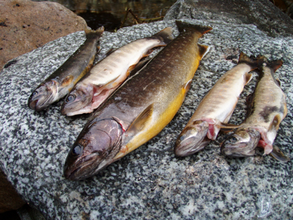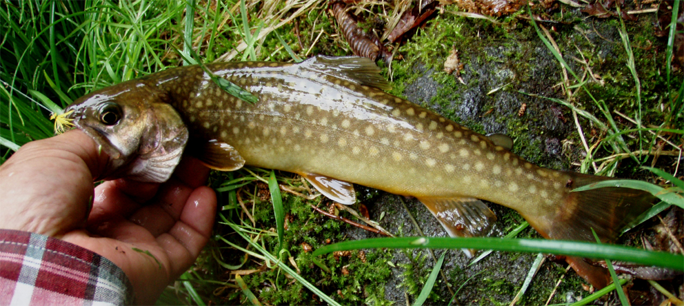 2011年4月 ・・・渓流釣り解禁でした・・・ それから数回沢に入るも尺イワナは出なかったが! 今シーズン初めての尺イワナを釣り上げた引きの強いイワナに顔を見る前から十分な手応えを感じる 光沢の良い黒い姿が水面から飛び跳ねご挨拶だ!