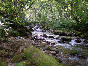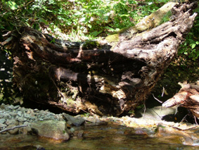 太さ2m位の流木 穏やかな流れ