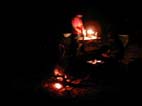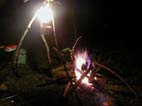 周りはナラ林の巨木が見事である 早速テントの準備そしてや夜の楽しみキャンプ&酒盛りと洒落込む
