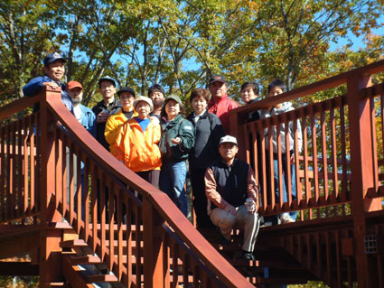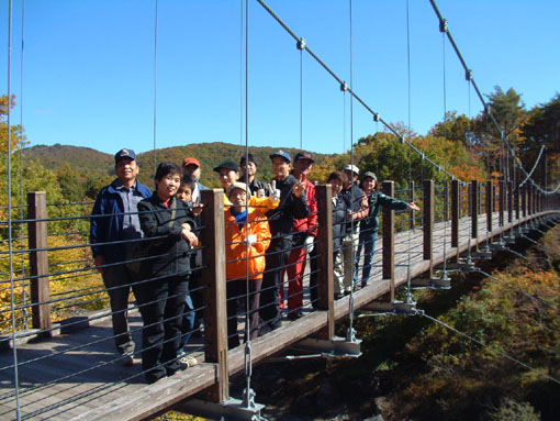 ![]() 湖畔のキャンプ場 ![]() 東小屋で食事の準備 ![]() 焼肉をKさんが手際よく (^_-) 焼いてます ![]() O 委員長が楽しそう ![]() 焼きそば奉行の大内さん ![]() 暖をとるメンバー カルシュウム補給に蝉の殻を焼いて食べたのは誰だ!! ![]() 美味しい特製焼きそば (@_@) ホントにうまがったない ![]() 参加者一同 某会のアースクリエート(株)が設計施工致しましたスロープ リサイクル資材です ※お問い合わせは掲示板へ宜しく ![]() 紅葉と川面が眩しい午後の一時 ![]() リサイクル資材で出来てる吊橋 今日のメンバーで〜〜す (*^_^*) ![]() 遊歩道 中央の黄色いジャケットの奥方は83才です しゃきしゃきのお婆ちゃっん ”元気いっぱい” ![]() 帰りに立ち寄りました天栄湯 ? & 佇む岡部さん 自然探索とアナログの世界へ 大内委員長の呼びかけで15名が参加した 観光バスにゆられ郡山をAM8:00に出発 羽鳥湖キャンプ場へと向かう 委員長の挨拶を頂き バスの中は賑わいを見せる 会員と仲間が用意された飲み物やおつまみに喉を鳴らす バス移動の楽しみが此処に現れる!! キャンプ場は少し風があり肌寒い 寒さを押しのけビールで乾杯 持ち寄った食材を手際よく準備 焼き肉が 焼きそばが そして 湖畔に生食してたキノコ(毒??少しなら安全)を焼いて食べた 盛り上がりを見せたその時 Sが採取してきた蝉の抜け殻 カルシュウム不足のOさん 焼き上げた蝉をカリカリ美味しいと食す・・・・(?_?) 参加した中に83才のお婆ちゃん(奥様) 歩く姿や食事のテンポ お話と私達が元気を頂いたのは言うまでもない 元気が一番・・今日もまた大先輩の教授を!! ・・・・何時までも元気でね・・・・ 遊歩道(ハイキングコース)〜吊橋〜キャンプ場へと戻りました 間もなく帰りの時間 今日の食材や器具の分散の為にオークションを開催(大げさかな) ビールや鉄板・ツマミなどが飛ぶように (^-^) 売れ チョット強制的なところも在りました 完売 湖畔を後にした 帰り道に在る天栄湯(入浴料¥500)に周り入浴 和気藹々の中で 今日一日を過ごすことが出来ました 大内委員長初め参加者の皆さん有り難うございました ・・・SEI・・・