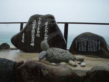 屋久島永田浜は、花崗岩が風化した粗い砂の海岸で、前浜といなか浜の二つの小さい砂浜です。
