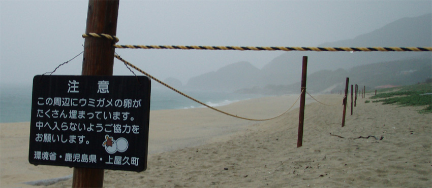 高密度に産卵がおこなわれる海岸で、アカウミガメの生活史にとって重要な砂浜です。