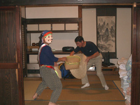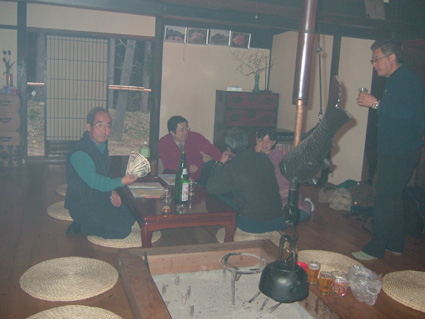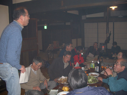 ![]() 早々会計のTAKEさんにお金を・・・ 蕎麦名人 INOさんの蕎麦打ち ![]() ![]() ![]() 初めから飲み過ぎのSEI 情緒豊かな囲炉裏 ご機嫌のKUNIさん ![]() 来年度の計画を練るリーダー会 ![]() 暗闇の中に井戸が!! 古式豊かな和風の家でくつろぐメンバー ![]() 囲炉裏でくつろぐTUKASA & NOBU ![]() ![]() いよいよ蕎麦が出来上がる INO 蕎麦名人 ![]() チャーミングなFUKUさん なにやら囲炉裏で会議が始まる のれんの掛かる仕切 吹き抜けの梁 と 裸電球 いよいよ ↓ 余興が (TUKASAさんから写真が届く (^_-) 追加UP致しました) ![]() ![]() ![]() ![]() ![]() ![]() ![]() ![]() ![]() 変装しているのはだ=れ (@_@) → ![]() 真夜中に怪しげな灯りが立ち上る ハッカ山苦楽部の移動例会忘年会が古民家を再現した三世代交流館で開催される 2005年度の計画やINO蕎麦名人が実演する手打蕎麦の試食が 20名の会員の参加の下 開催されました。 例会では持ち寄られた案を元に熱の入った審議がリーダー会を中心に練られ素案が出来上がる その後 おでんや漬け物 豊富な食材に加えて打ち立ての蕎麦を食べながら宴会に突入 長い夜が始まりました。 途中からは余興が始まり カラオケ・やすき節の踊り??・ひげダンス・仮装と 笑いの中に会員の親睦を図り一年を締めくくる!! (余興の写真が1枚も在りません(>_<)・・どなたか撮られた方は・・) 遅い夜は最終時間を止めて夜な夜な続くのでした 2005年も会員の皆様の無事故と 山岳会の発展そして個々の活躍をご祈念致します 戻る |