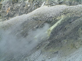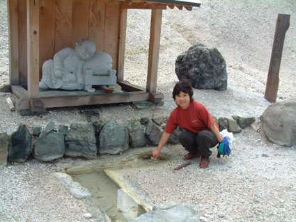 紅葉が始まる (噴煙が上がる河原毛地獄)