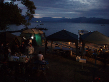 ![]() 奥に磐梯山が見える湖面 ジェットスキーに乗る仲間! 22〜23日は猪苗代湖でキャンプです 素晴らしい天候の中で遊びを満喫した もちろん飲むのが主です 豚の姿焼きをはじめ豚汁&豊富な料理が並ぶテーブル 飲み会は夜中の12時で終了 眠りにつく・・・ 翌日はクルーザーで猪苗代湖を一周して変化する景色を楽しみ 二日間に渡るキャンプが無事に終了いたしました。。。 ![]() バギーで砂地を走る ![]() 豚の姿焼きです ![]() クルーザーで猪苗代湖を一周する ![]() ジェットスキーで付いてくる仲間 湖面からの風景が変わります ![]() 湖面から見る風景 ![]() キャンプ地へ戻る ![]() 今回一番の元気印はTaku君でした ![]() 日が落ちるとき・・・ ![]() キャンプ・フアイヤー ![]() 夜中も湖畔は賑やかだ! ![]() 炭火焼きが出来上がる ![]() 23日の朝 今日も元気なTaku君 楽しい二日間のキャンプも無事に終わりました 遠方から参加の皆さん道中お疲れ様でした 最後まで清掃をしてくれた仲間に感謝いたします。 ・・・SEI・・・ 戻る |