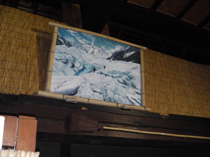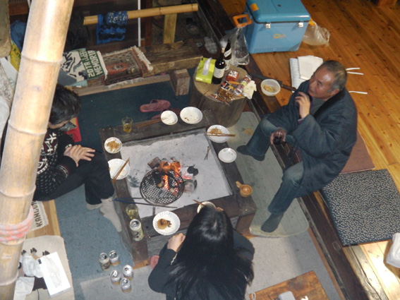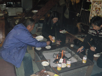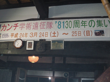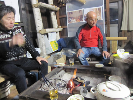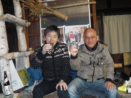 ![]() さんめいあん 岳啼菴 ![]() 古民家の母屋 離れ家 10軒ほどの集落の中に建つ古民家が岳啼菴です 離れ家は陶器を作る轆轤や材料が在り焼き物の皿などが保管されてました ![]() 土蔵 庭に咲く花・・・? 土蔵は東日本大震災で土壁が剥がれ落ち大きなひび割れが見られる 蔵の中には山岳書籍が所狭しと並び歴史の古さを感じ取ることが出来ます ![]() アヤメ 珍味の佃煮 酒を酌み交わし宴が盛り上がるほどに珍味の佃煮が出てきます・・・(笑) 蚕様のサナギの佃煮は口にするも食べることが出来なかったSei 「何でも食べる好き嫌いがない」 この言葉は返上することにした。 ![]() Takahasiさん〜Sei ザザムシ 次にザザムシの姿佃煮です これはイナゴの味に似てる香ばしい物体で数匹食べました。 ![]() Hosaka先生の作ったカップ 蜂の子 Hosaka先生の作ったカップです 素晴らしい木の温もりがあるカップは一個作るのに材料を吟味して形に成るまで 大変な能力と時間が費やされる 貴重なカップを私達は頂きました Hosaka先生ありがとうございます。 ![]() 囲炉裏を囲んで山談義 30周年集い 囲炉裏ではイノシシの肉やパパイヤのサラダ等々をご馳走になる! 2012年3月24〜25日はカンチ学術遠征隊の30周年の集いが催されました。 ![]() 氷河を渡る絵・・? 柿の木のオブジェ 母屋には貴重な絵画や古木のオブジェなどが飾られる ![]() Takahasiさん〜Gonちゃん〜Hosaka先生 囲炉裏では網焼きを食べながらの談笑でした ![]() ご機嫌のTakahasiさん&Sei Gonちゃん 泡に日本酒〜ワイン〜焼酎など飲み物が並び飲むほどに意識が薄れてきた ![]() 古民家の囲炉裏で酒を酌み交わす 古民家に、ゆらゆらと煙がのぼり、炭火が赤く部屋を照らす 心落ち着き ほのぼのとした時が流れる素晴らしい空間でした ![]() 名峰に挑んだ仲間の姿 山岳書籍 歴史の中には色んな思い出が在るようだ 山から帰ることが出来なかった仲間や登頂を断念しなくては成らなかった事・等々・・・ ![]() 古民家に命名された 掘りごたつの先生 掘りごたつに座り、部屋から外を眺めるHosaka先生の姿が雄々しく見えた。 先生 美味しい料理や山の話など有り難うございます またお邪魔させてくださいね! ・・・Sei・・・ 動画をご覧くださいね! 戻る |