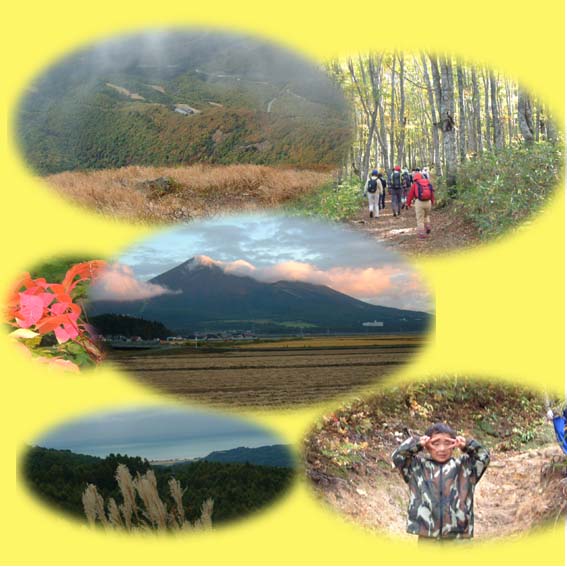 右上はブナ林を進む同友会のメンバー