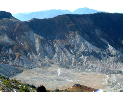 沼ノ平の火口と噴煙(十数メートル迄上がる時がある)
