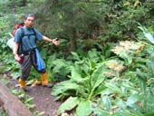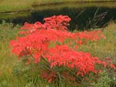 ![]() 東電小屋をAM7:30出発 トリカブトの花に見送られヨッピ川の吊り橋に到着した 早くも休憩ダ 吊り橋を被写体に写真を撮る岡部さん そろそろ出かけますかと腰を上げる 吊り橋を渡り竜宮小屋に向かう 至る所にナナカマドが鮮やかな色で湿原を引き立てていた このころから霧雨が降り出す 雨男は居ないはずと ![]() 今日参加出来なかった佐藤さんを引き合いに出し 話が盛り上がる 尾瀬ヶ原に虹が架かり 雨の成せる自然のスケッチを楽しんだ 竜宮小屋にAM8:25到着 ここで前文の日記を見つけ話が盛り上がり またまたビールで乾杯と飲む四人衆 小屋お出て 下田代 にさしかかる霧雨が止み 現れた草紅葉と山並み雲のジュウタンはキャンパスに書かれた風景画をファインダー越しに覗き込んだ 絵の様に思えた 木道の先には見晴の小屋が見えた 通り過ぎてしまうのを 惜しむ様に 爽やかな風が湿原の草葉を揺する ![]() AM9:20小屋に着く 休憩している人は まばらでシーズンオフで有ることを伺うことが出来る 暫し休み懲りないビールタイム 小屋を後にして尾瀬林道を尾瀬沼に向かい進む 小さな鈴を いくつも付けた様に見える花が私の足を止めた (*^_^*)綺麗だ 白砂峠にはAM10:50 大きなブナの木が年輪を推測しなさいと 行き交う人達に問題を出してくれている様な響きが聞こえる ![]() 林道の裾に有るミズバショウの葉が異常に大きいのが気にかかる 異常気候の現れか はたまた栄養の偏りか心配だ 沼尻休憩所にAM11:10到着 昼の食事を取ることにした 沼尻ソバの大盛りを頼み ソバには日本酒が合うと言い注文 宴会モードに入る PM12:20まで休み出発 尾瀬の茶やを遠くに眺め分岐点を大江湿原に向かい進む 空模様が急に ![]() 怪しくなる 雨が本降りに変わって来たのでザックカバーを付け林道を急ぐ 大江湿原そして沼山峠のベンチを急ぐ 雨が大粒になる 峠のバス乗り場に着く頃は雨足が強くなって来た PM2:15〜御池にはPM2:50に着いた 帰路は 風呂に浸かり「温泉きらら」で蕎麦を食べてPM7:30郡山に無事に帰る ハッカ山・倶楽部の4人衆 おつかれさん!! |