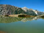 目指し登る 熱い(^_^)汗が出る ピークにある八方池は無風の為鏡の様に山並みを映し出していた