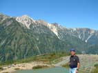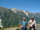 白馬三山をバックに記念写真 間もなくアルプスを後にし帰る現実が何とも恨めしい 緩やかな稜線を下り