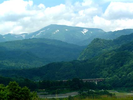 月山SAより中央が月山・左の小ピーク湯殿山