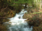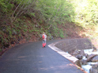 記念品と御神酒を頂きAM7:30滝沢に沿って舗装された林道を登る 10分程で登山道に着き滝沢の水の