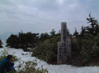 木階段より一時間 山肌が雪で覆われアイゼンが必要になり装着 解けた雪がアイゼンにへばり付き歩きにくい